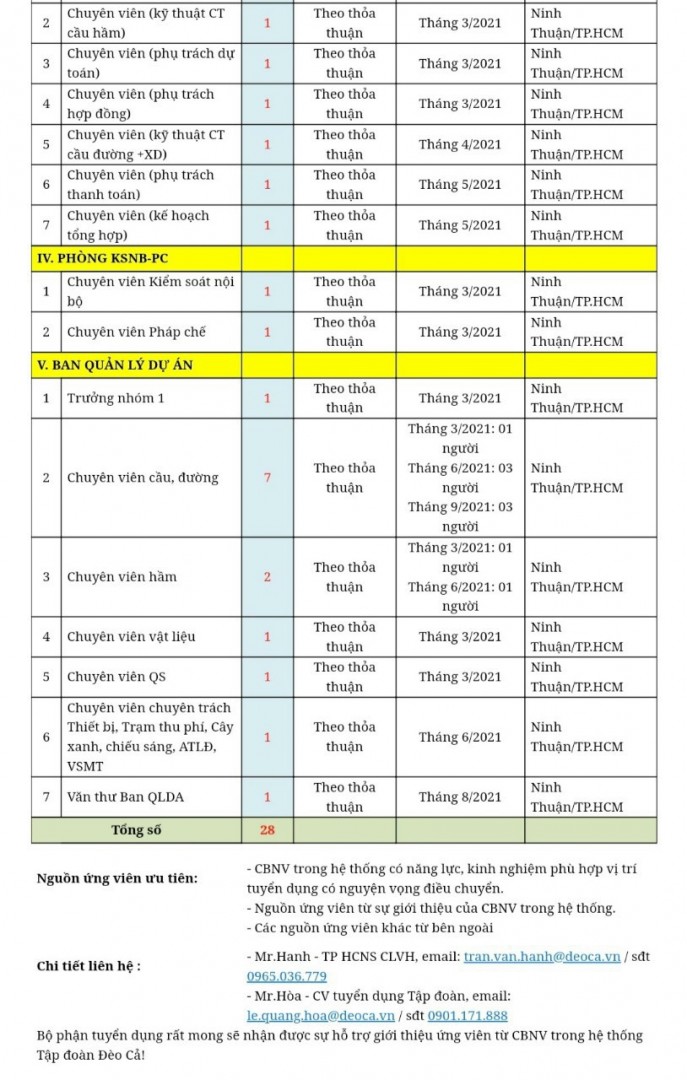 Số lượng tuyển dụng: 20 cán bộ kỹ thuật hiện trường, 10 cán bộ kỹ thuật nội nghiệp, 10 kỹ sư vật liệu, 03 cán...