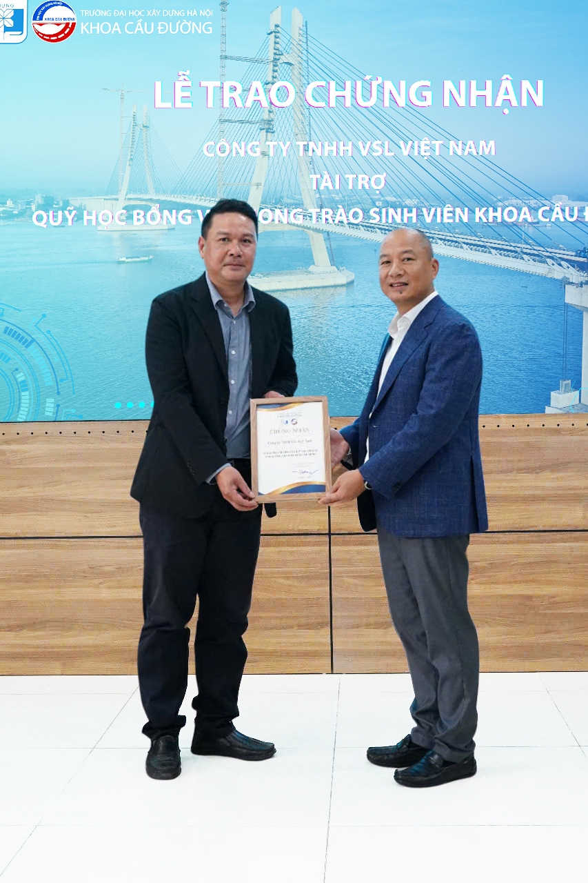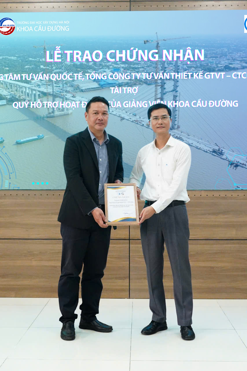 Ngày 16/05/2025, Khoa Cầu Đường – Trường Đại học Xây dựng Hà Nội đã tổ chức Lễ trao chứng nhận tài trợ dành cho các đơn vị doanh nghiệp đã đồng hành cùng hoạt động đào tạo và hỗ trợ sinh viên của Khoa.