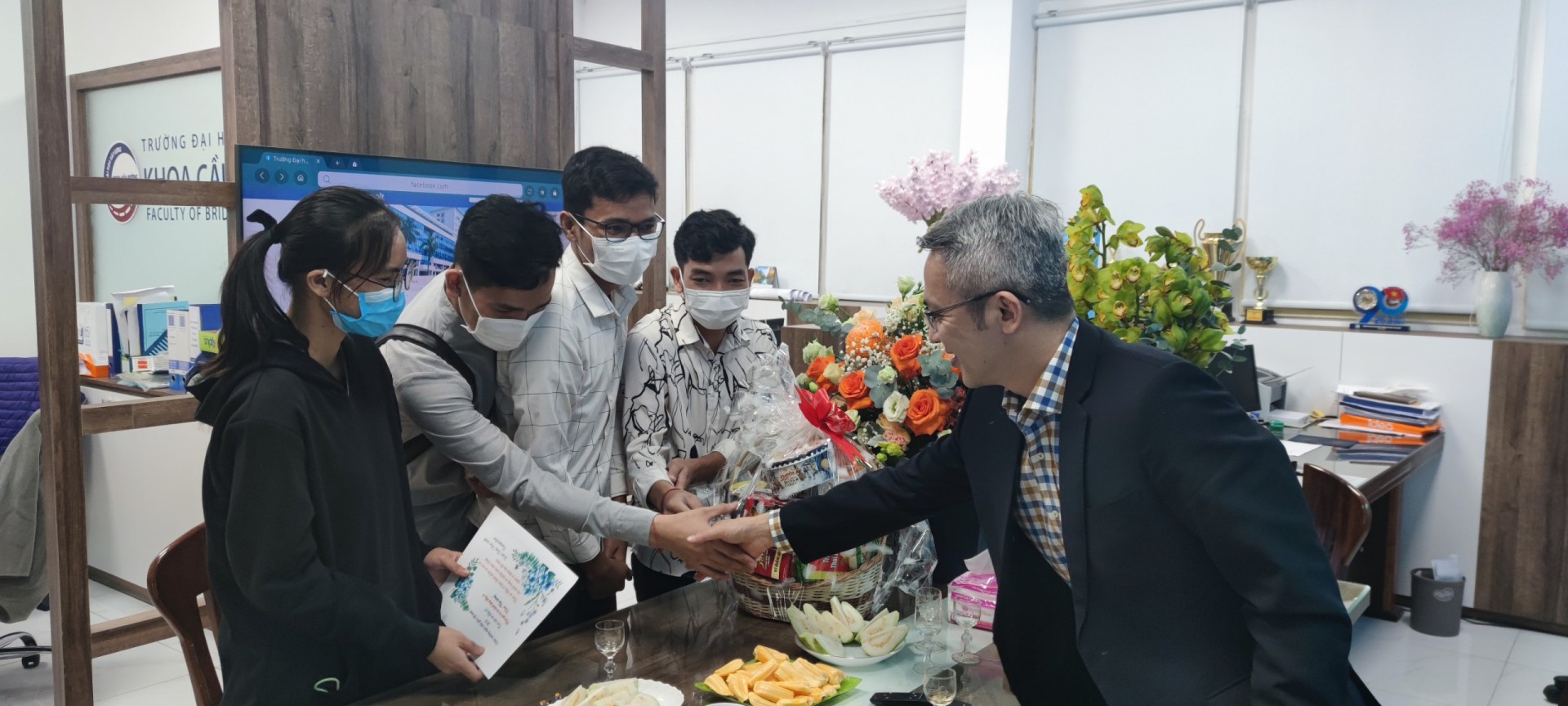 Ngày 19/11/2021, tại văn phòng Khoa Cầu Đường, đại diện tập thể lưu học sinh Campuchia đang học tập tại Khoa đã đến và gửi những lời chúc mừng tốt đẹp nhất đến các Thầy Cô giáo trong Khoa nhân ngày nhà giáo Việt Nam 20-11. Tại đây, đại diện Ban chủ nhiệm Khoa đã gửi cảm ơn đến các em cũng như chúc tập thể lưu học sinh phát huy hơn nữa những thành tích học tập trong năm học mới, tiếp tục là một trong những cầu nối để thắt chặt hơn nữa tình hữu nghị Việt Nam – Campuchia