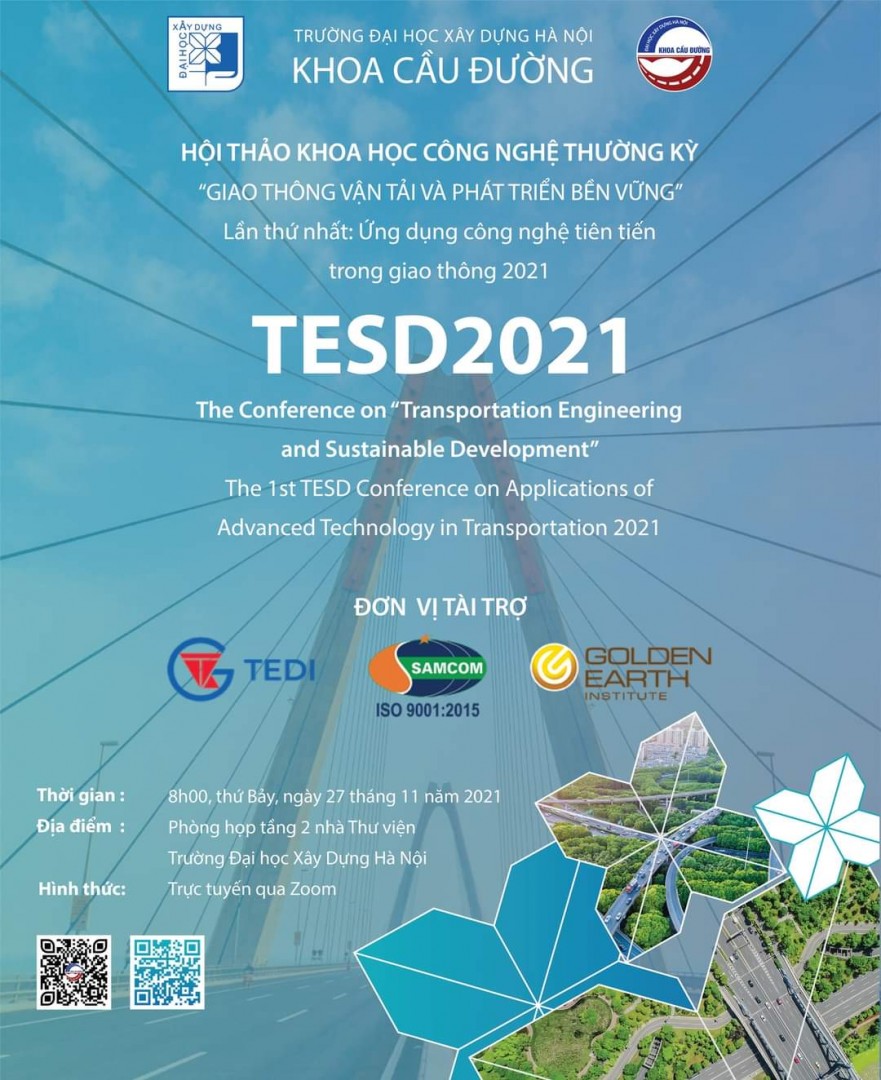 Hội thảo khoa học công nghệ thường kỳ “Giao thông vận tải và Phát triển Bền vững” do Khoa Cầu đường, Trường Đại học Xây dựng Hà Nội tổ chức với lần đầu tiên mang tiêu đề: “Ứng dụng công nghệ tiên tiến trong giao thông 2021” sẽ chính thức được tổ chức vào ngày 27/11/2021 bằng hình thức trực tiếp kết hợp trực tuyến.