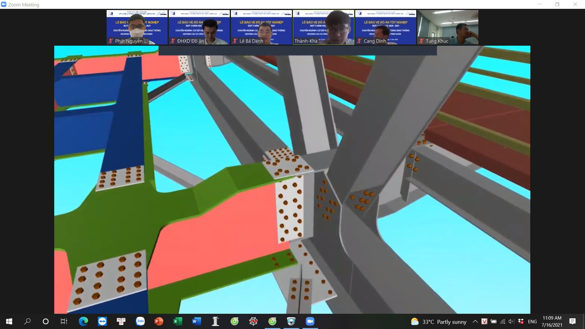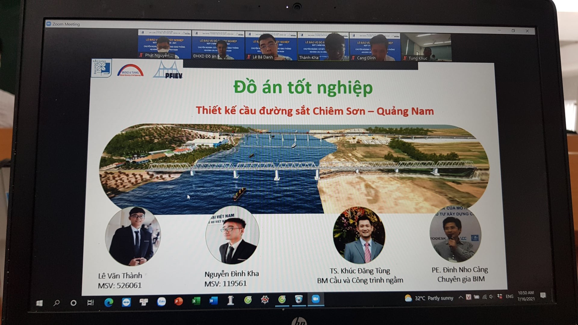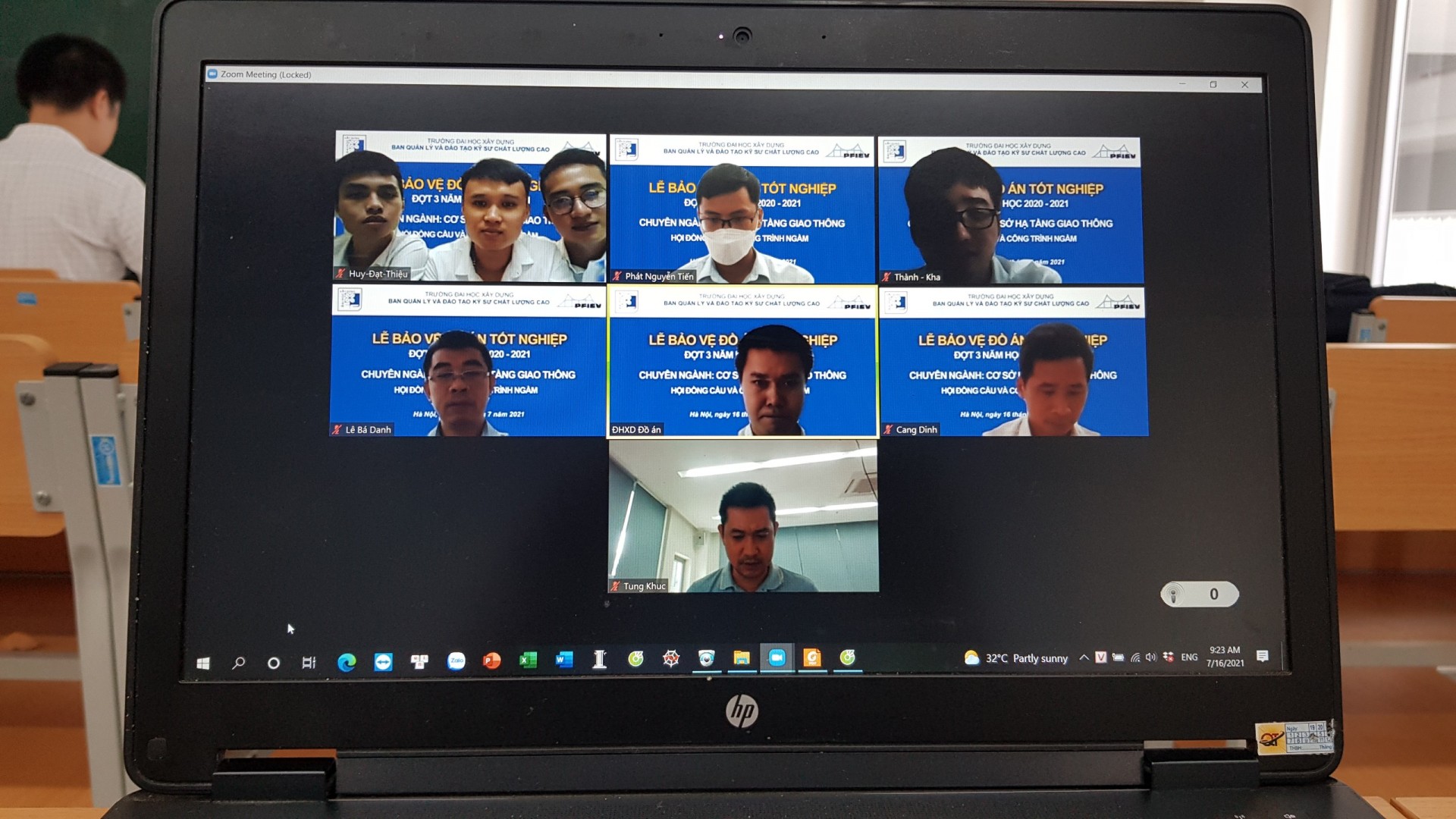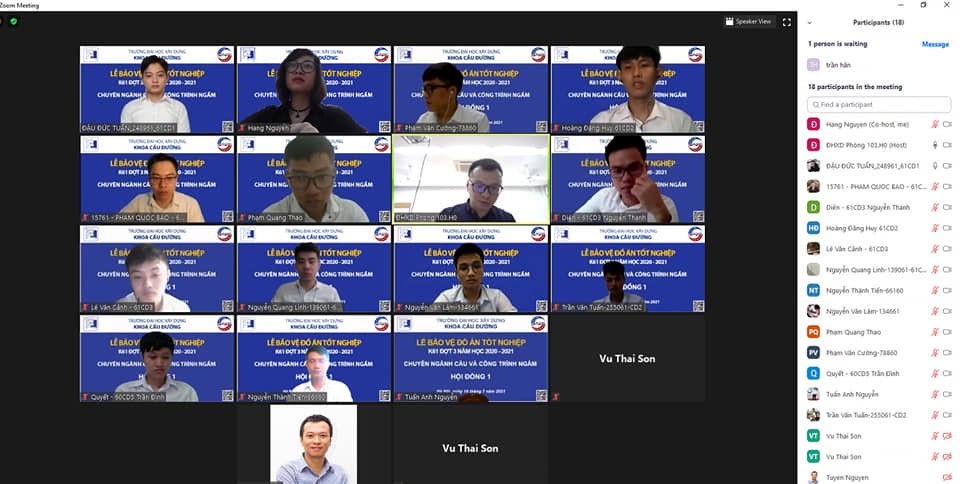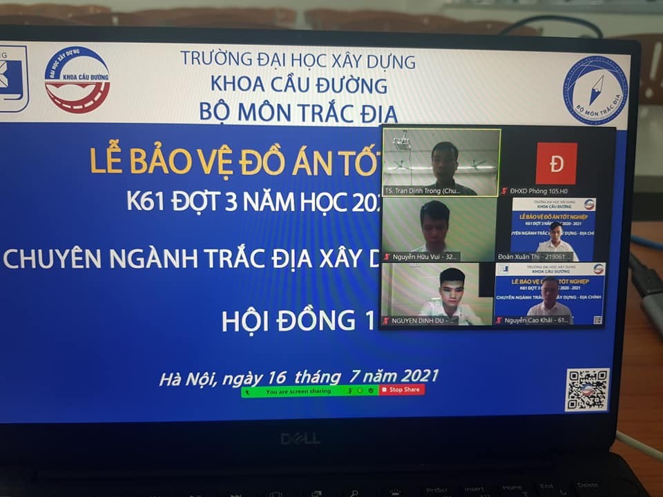Ngày 16 tháng 07 năm 2021 đã diễn ra buổi lễ bảo vệ ĐATN K61 đợt 3 năm học 2020-2021 của sinh viên các chuyên ngành: Cầu và Công trình ngầm, Đường ô tô và Đường đô thị, Trắc địa xây dựng-Địa chính. Đây là lần đầu tiên bảo vệ ĐATN được diễn ra dưới hình thức Online qua hệ thống Zoom của trường Đại học Xây dựng trong bối cảnh dịch bệnh COVID vẫn đang diễn biến phức tạp.