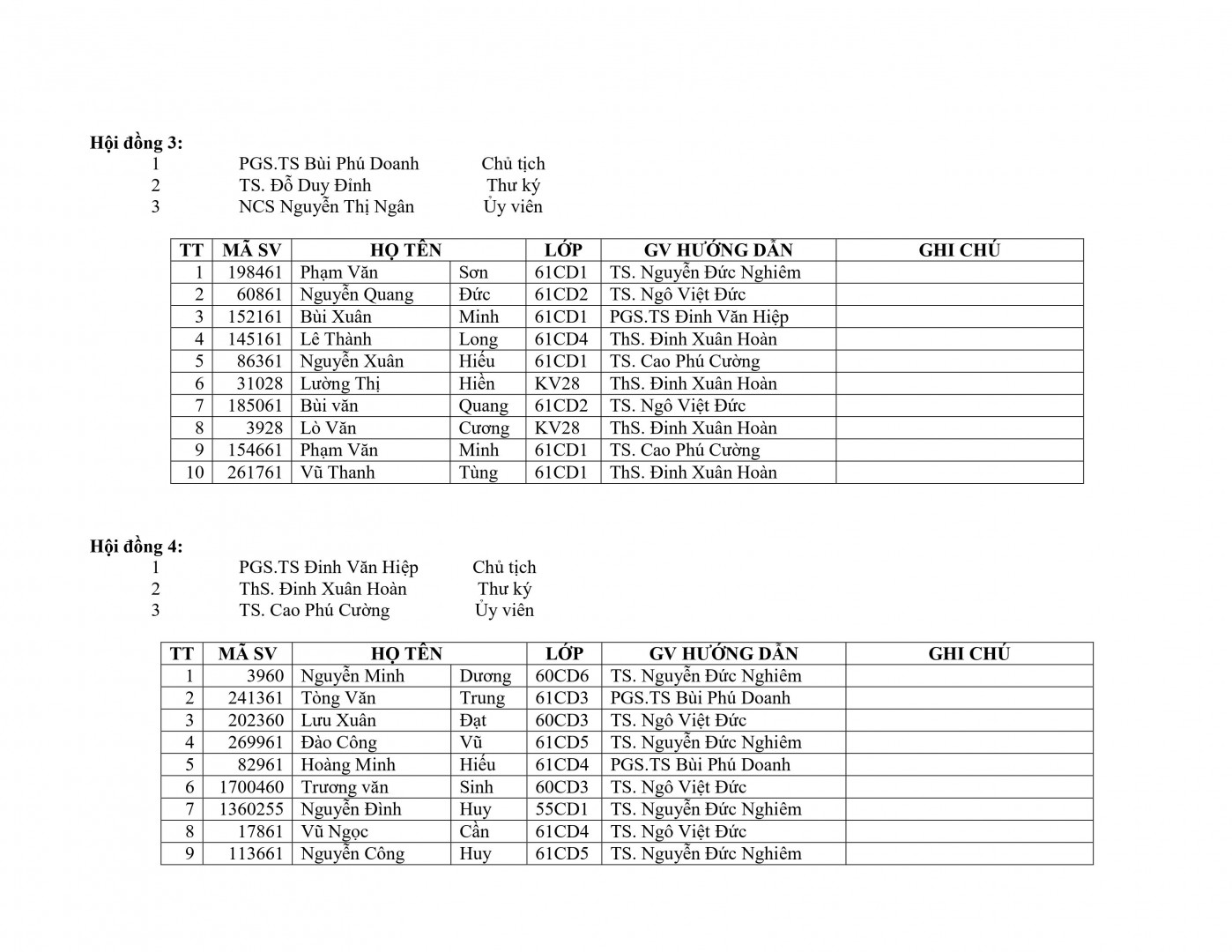 Danh sách bảo vệ đồ án tốt nghiệp K61 đợt 1 năm học 2020-2021