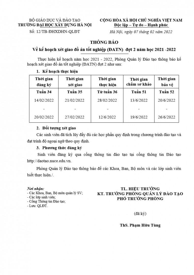 Khoa Cầu đường thông báo kế hoạch Bảo vệ Đồ án Tốt nghiệp Ngành Kỹ thuật xây dựng công trình giao thông - Hệ đào...