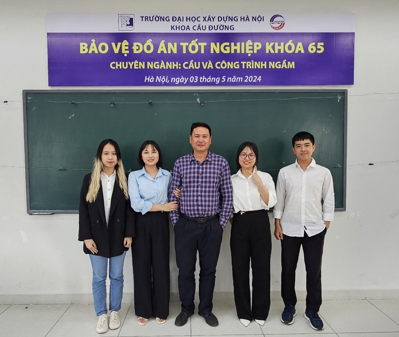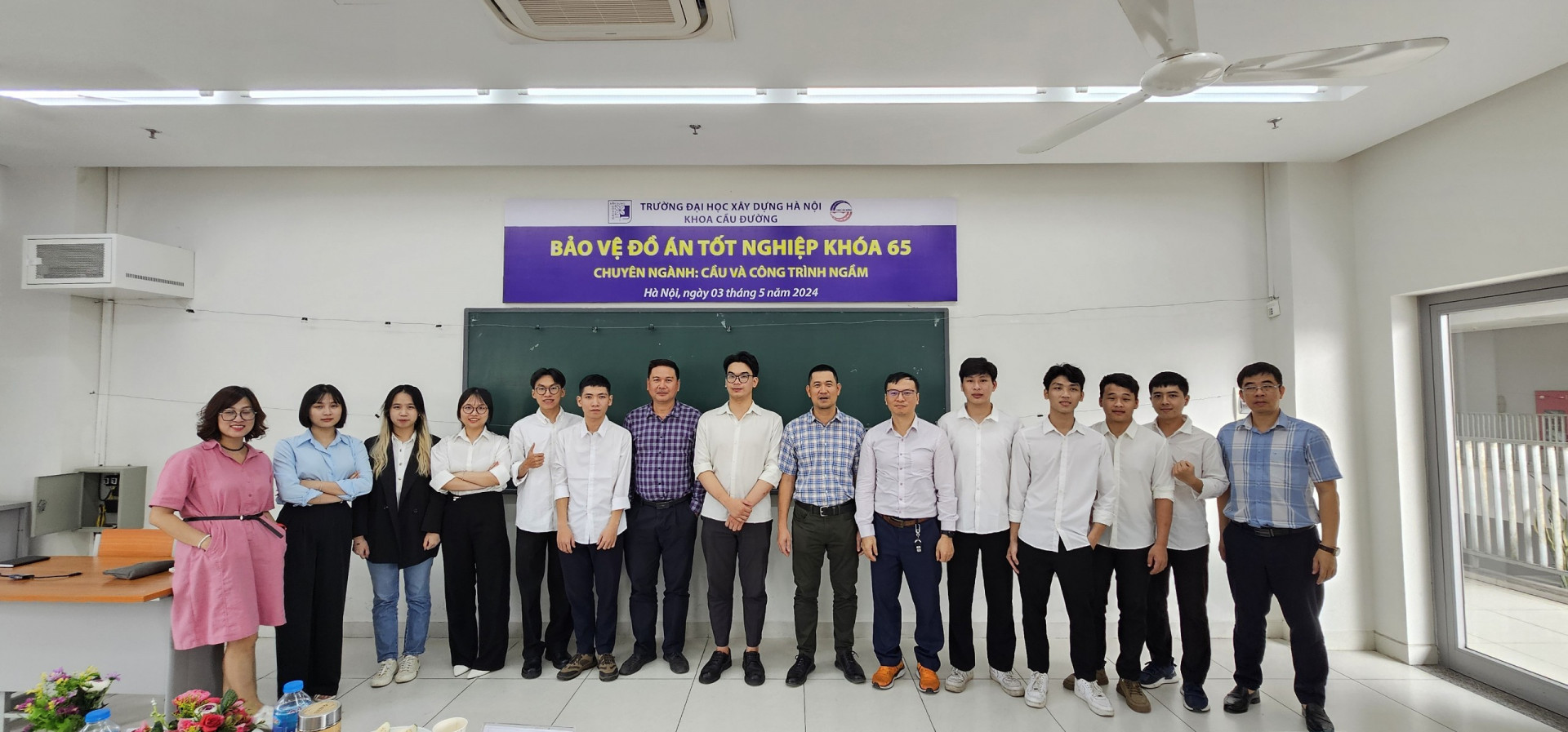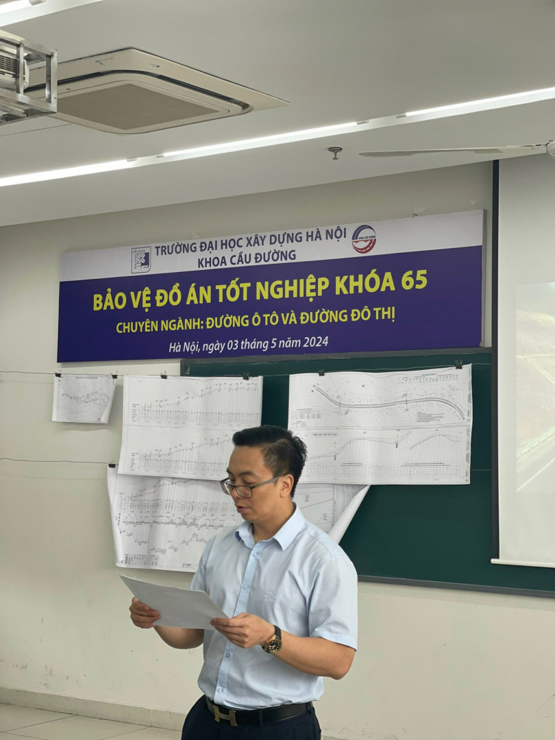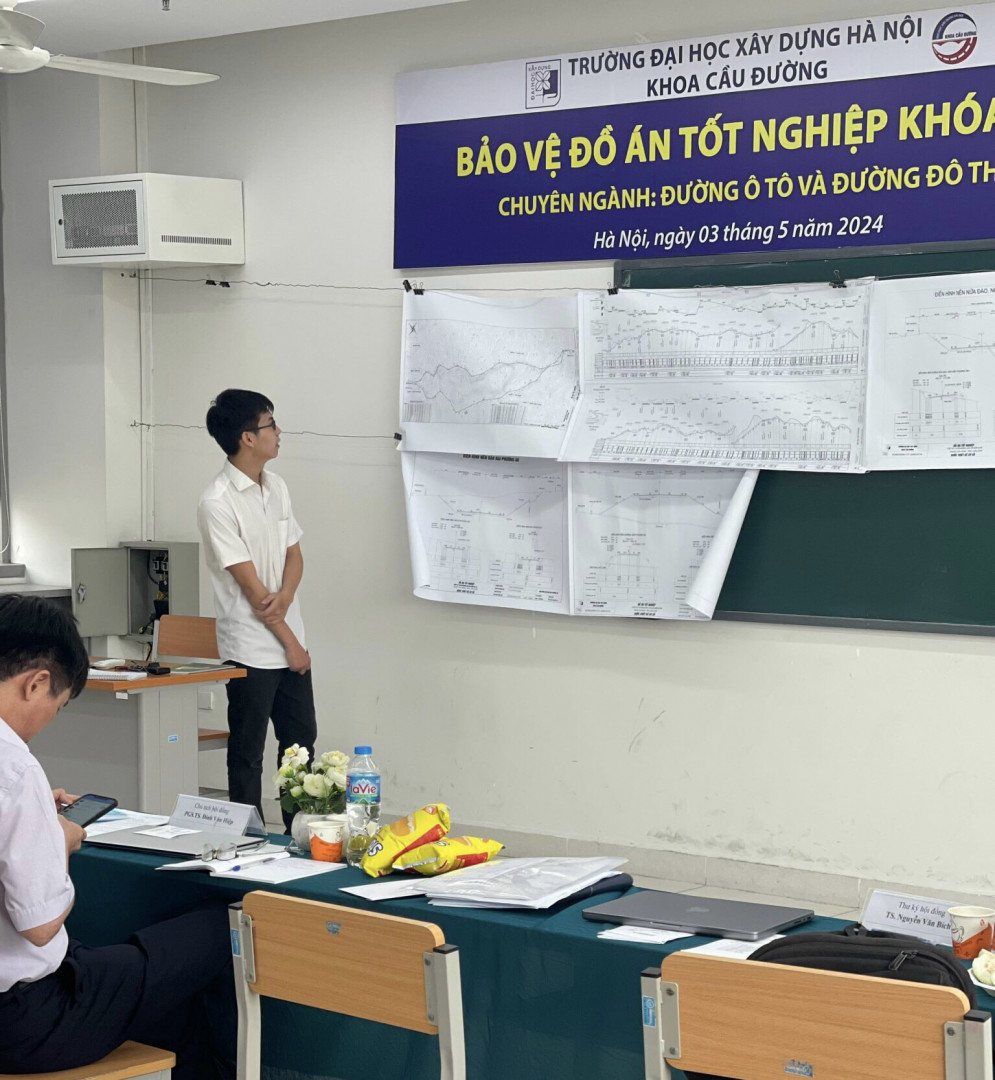 Ngày 03/05/2024, Khoa Cầu Đường đã tổ chức 02 hội đồng bảo vệ Đồ án Tốt nghiệp cho sinh viên K65, đợt 1 năm học 2023-2024 ở 02 chuyên ngành: Cầu và Công Trình Ngầm (13 sinh viên); Đường ô tô và Đường đô thị (12 sinh viên).