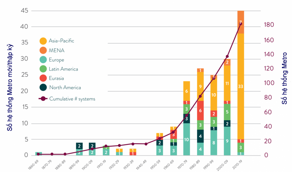 Sự phát triển của các hệ thống Metro trên thế giới qua các thập kỷ (1860-2019):