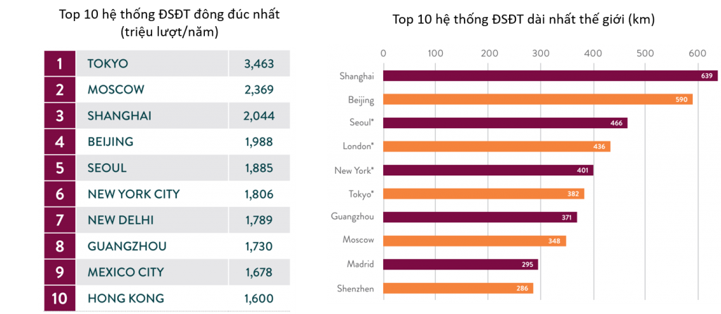 Xếp hạng các hệ thống Metro trên thế giới: