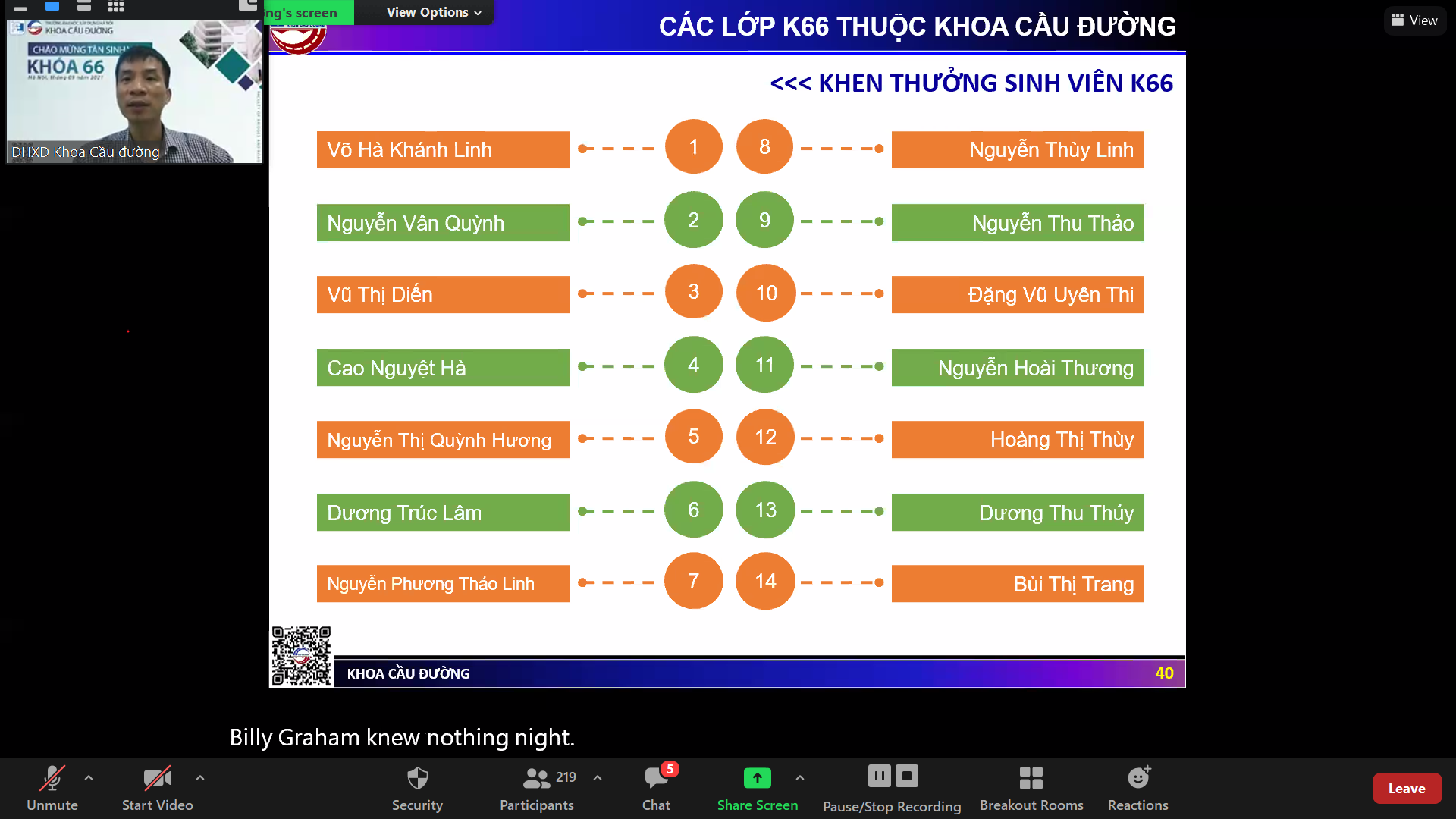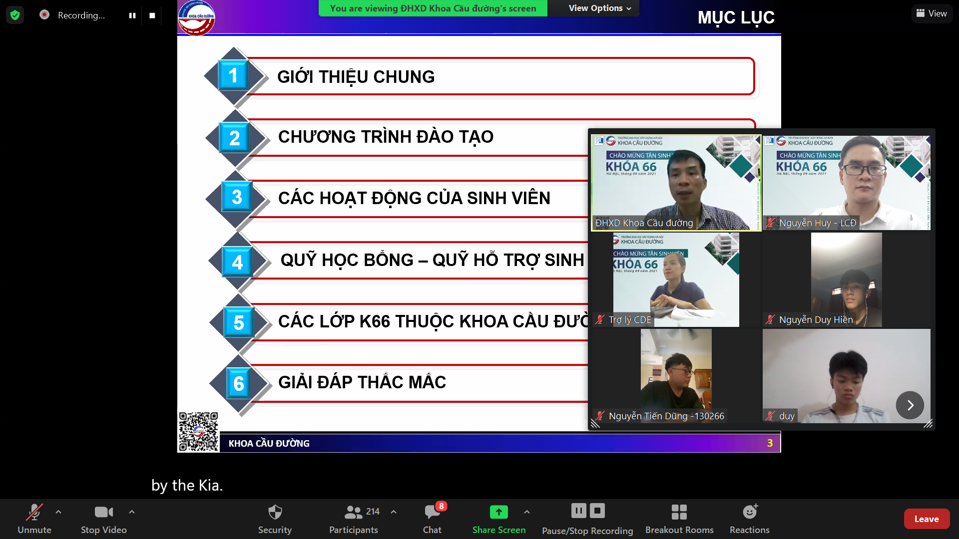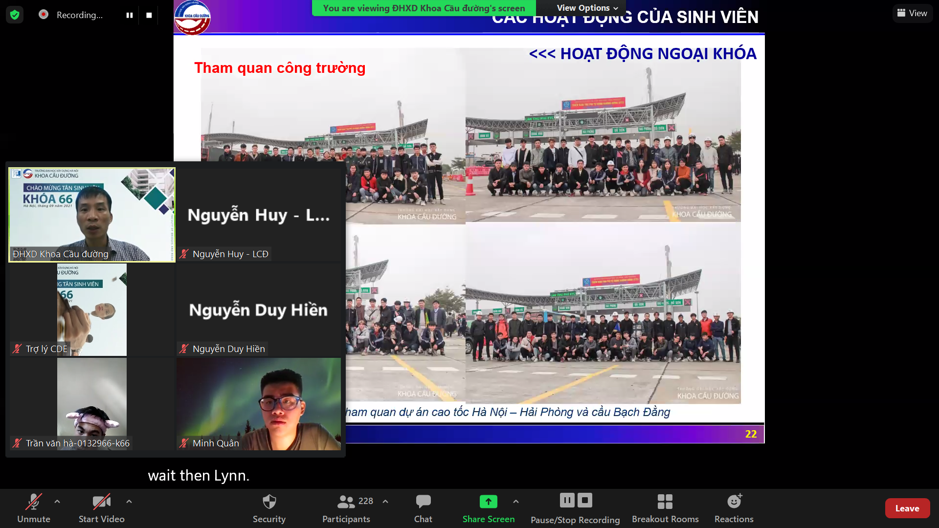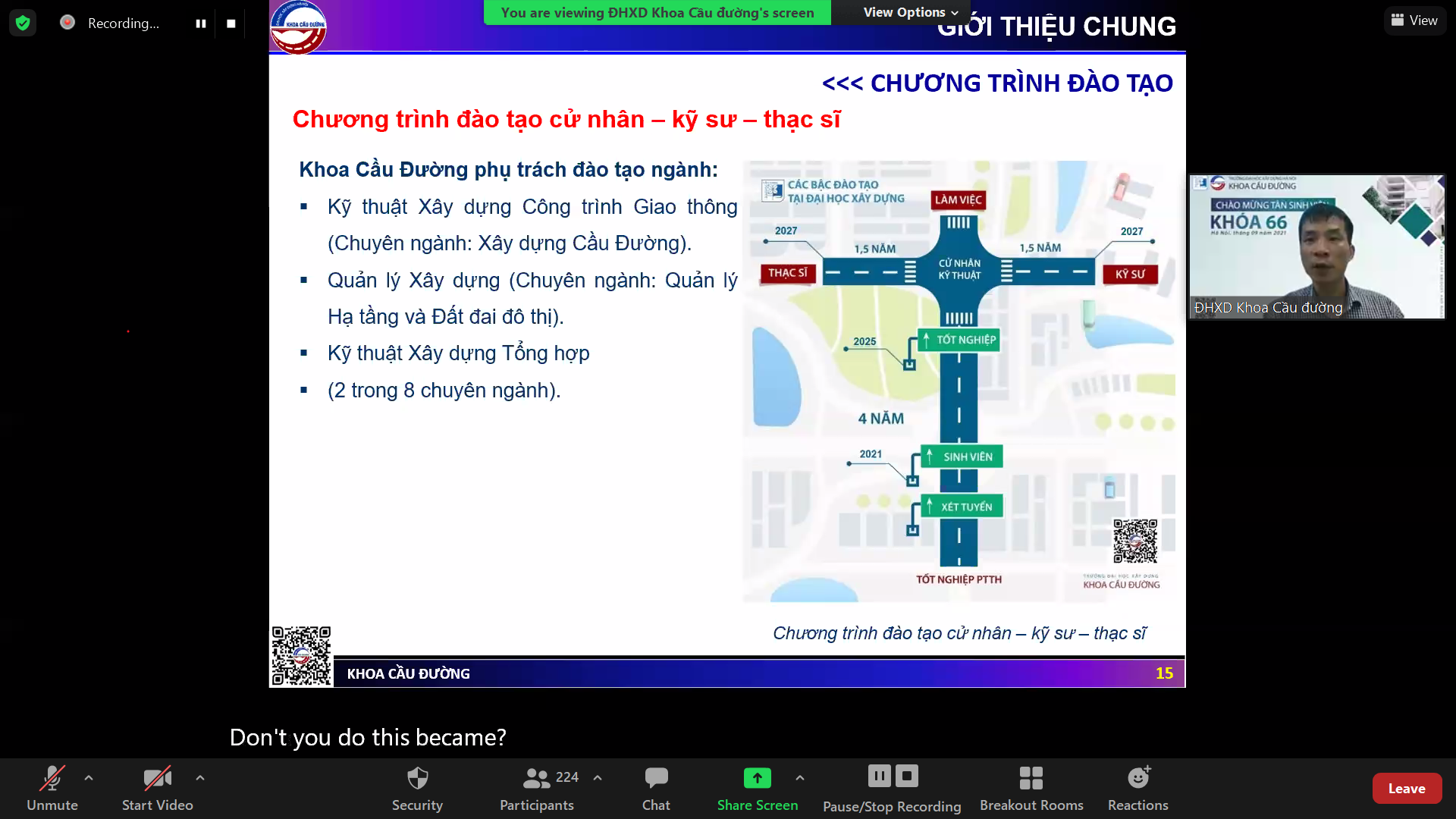 Chiều ngày 28 tháng 09 năm 2021, khoa Cầu Đường đã tổ chức buổi gặp mặt giữa các thầy Ban Chủ Nhiệm Khoa, thầy/cô giáo viên chủ nhiệm với các tân sinh viên K66. Tại buổi gặp mặt này, các bạn sinh viên K66 đã được các thầy trong BCN Khoa giới thiệu tổng thể thông tin về khoa Cầu Đường, các chương trình đào tạo và các hoạt động sinh viên của Khoa. Sau đó, các bạn sinh viên K66 đã gặp gỡ và trao đổi các câu hỏi với các thầy/cô giáo viên chủ nhiệm.