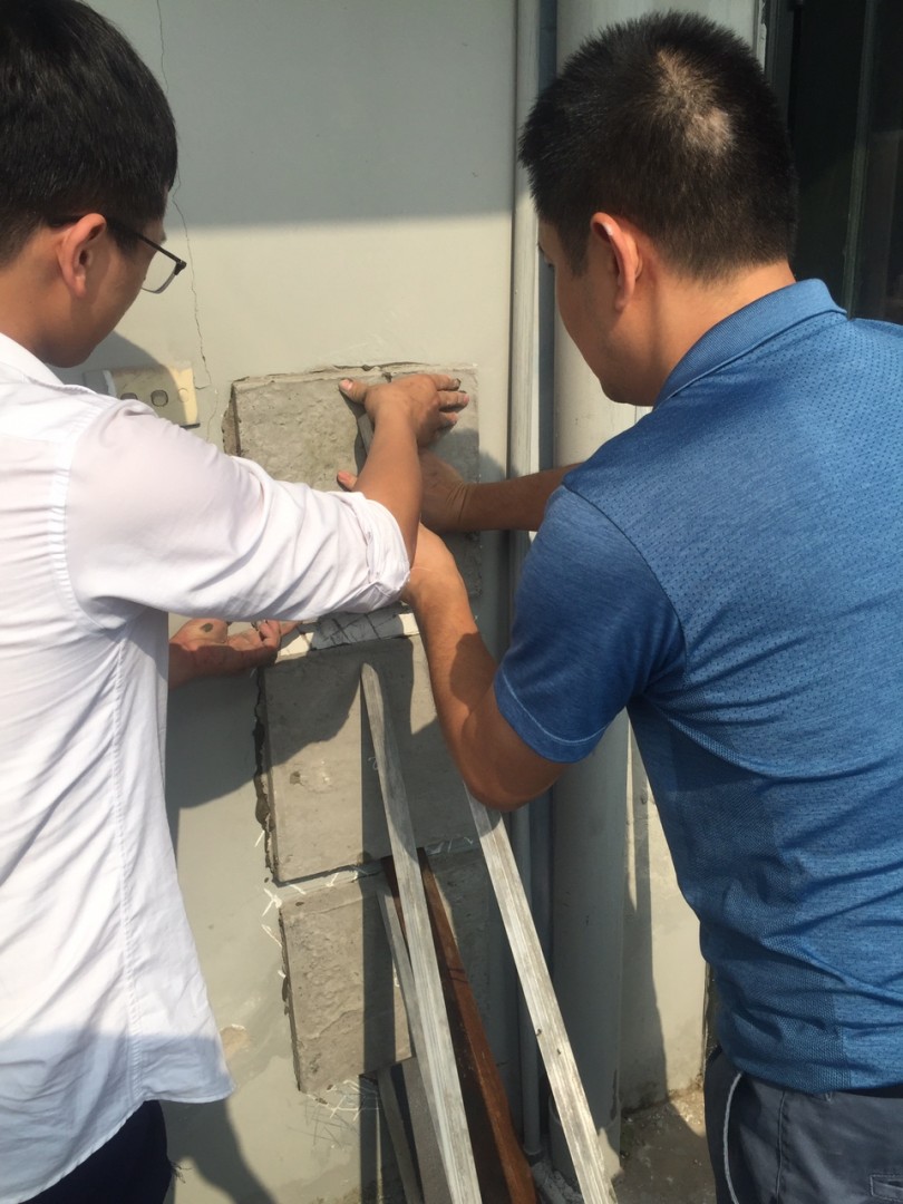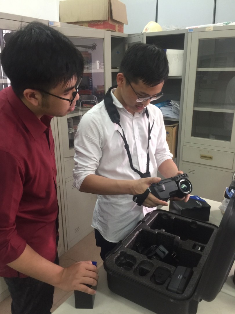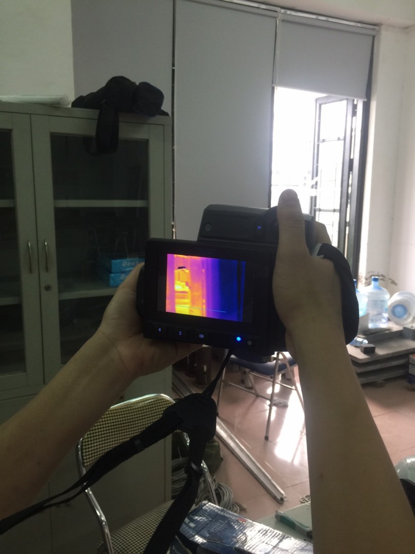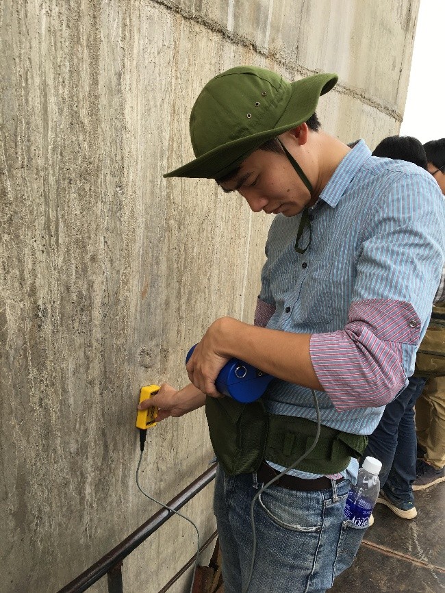 | Hình 13. Thí nghiệm xác định khuyết tật của bê tông sử dụng máy ảnh nhiệt – TS. Khúc Đăng Tùng hướng dẫn học viên cao học | |