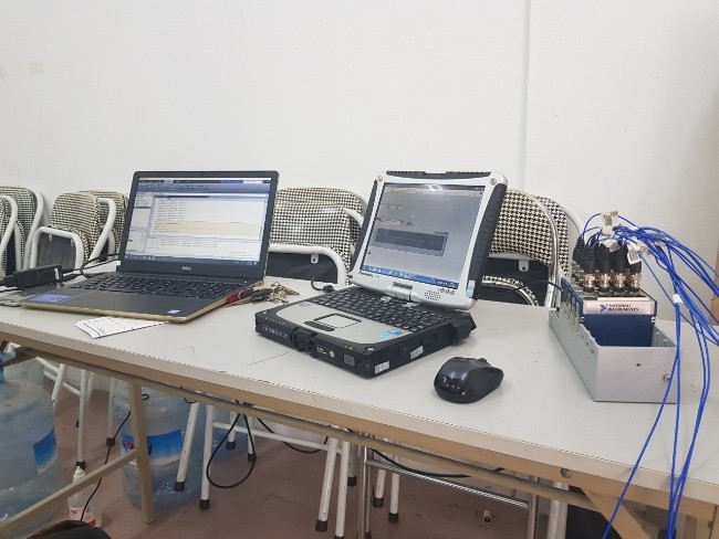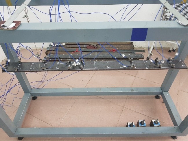 | Hình 15. Thí nghiệm tìm vị trí hư hỏng của dầm thép dựa trên phương pháp đo dao động bằng thiết bị NI – NCS. ThS. Nguyễn Hướng Dương | |