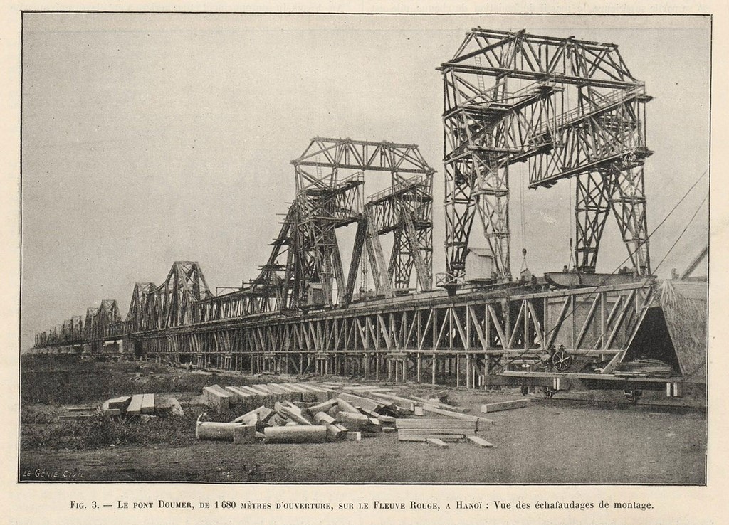 Ảnh các dàn cầu Long Biên được lắp ráp trên đà giáo. Ảnh sưu tầm trên internet