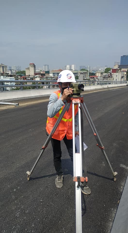 Tại công trình đường vành đai 2 trên cao đoạn từ Ngã Tư Sở – Ngã Tư Vọng, các bạn sinh viên chuyên ngành Trắc địa Xây dựng – Địa chính đang được tham gia thực tế các công tác kiểm định cầu như đo kiểm tra độ võng cầu, kiểm tra cao độ mặt cầu.