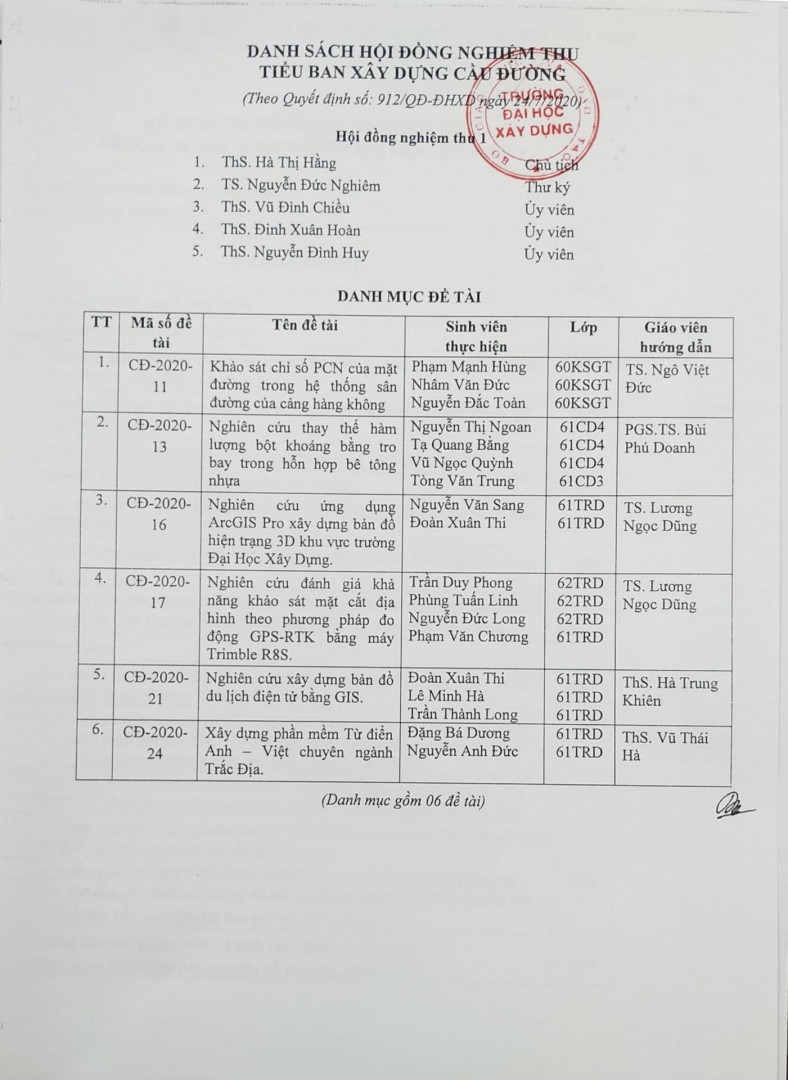 Khoa Cầu đường thông báo kế hoạch Bảo vệ Đồ án Tốt nghiệp Ngành Kỹ thuật xây dựng công trình giao thông - Hệ đào...