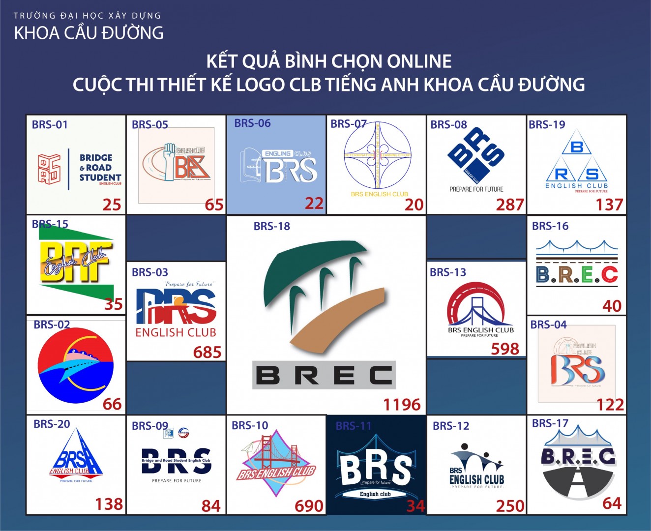 Từ ngày 05/09/2020 đến 24h00 ngày 15/09/2020 Ban tổ chức (BTC) cuộc thi “Thiết kế logo CLB tiếng Anh, khoa Cầu Đường” đã tổ chức bình chọn trực tuyến trên fanpage BRS English Club với tổng số 19 bài thi tham dự. Dựa trên các tiêu chí như lượt like (hoặc biểu tượng cảm xúc) và lượt share của từng bài thi, BTC đã tìm ra tác phẩm đạt giải nhất vòng bình chọn trực tuyến.
