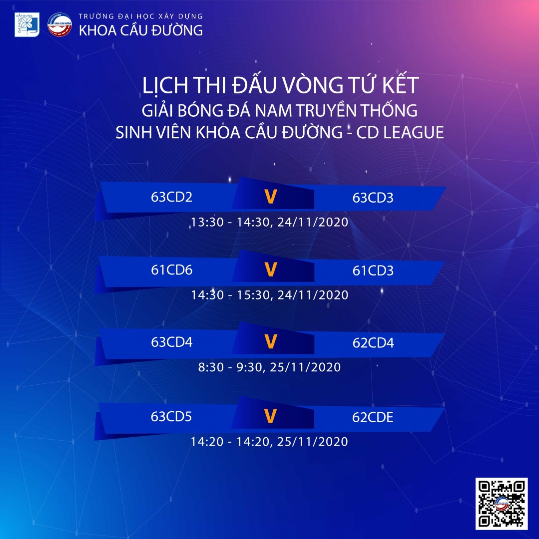 - KẾT QUẢ VÒNG 1-16 VÀ LỊCH THI ĐẤU TỨ KẾT GIẢI BÓNG ĐÁ NAM TRUYỀN THỐNG SINH VIÊN KHOA CẦU ĐƯỜNG – CD LEAGUE