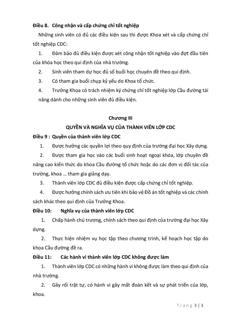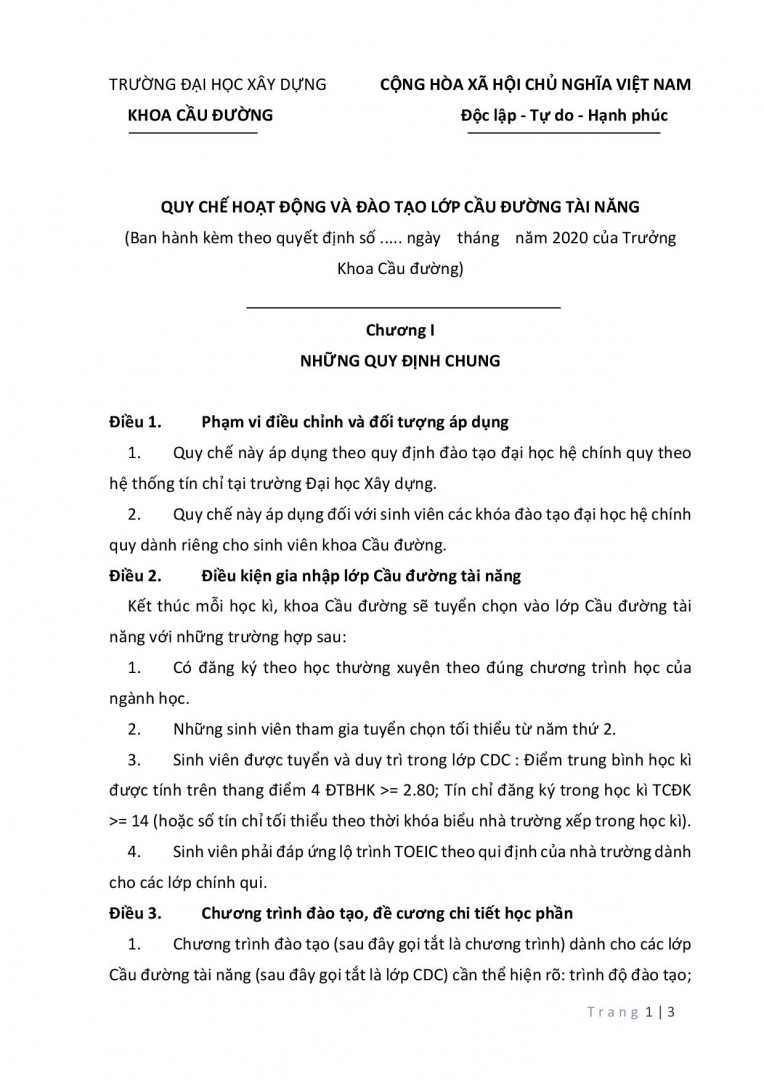 - Quy chế hoạt động lớp Cầu đường tài năng – CDC