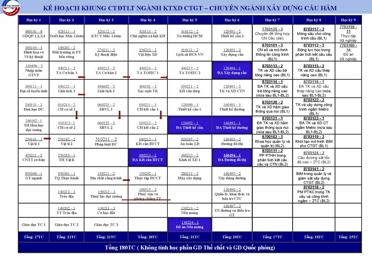 ⚜️ Danh sách môn học chi tiết: Chuyên ngành Xây dựng Cầu hầm