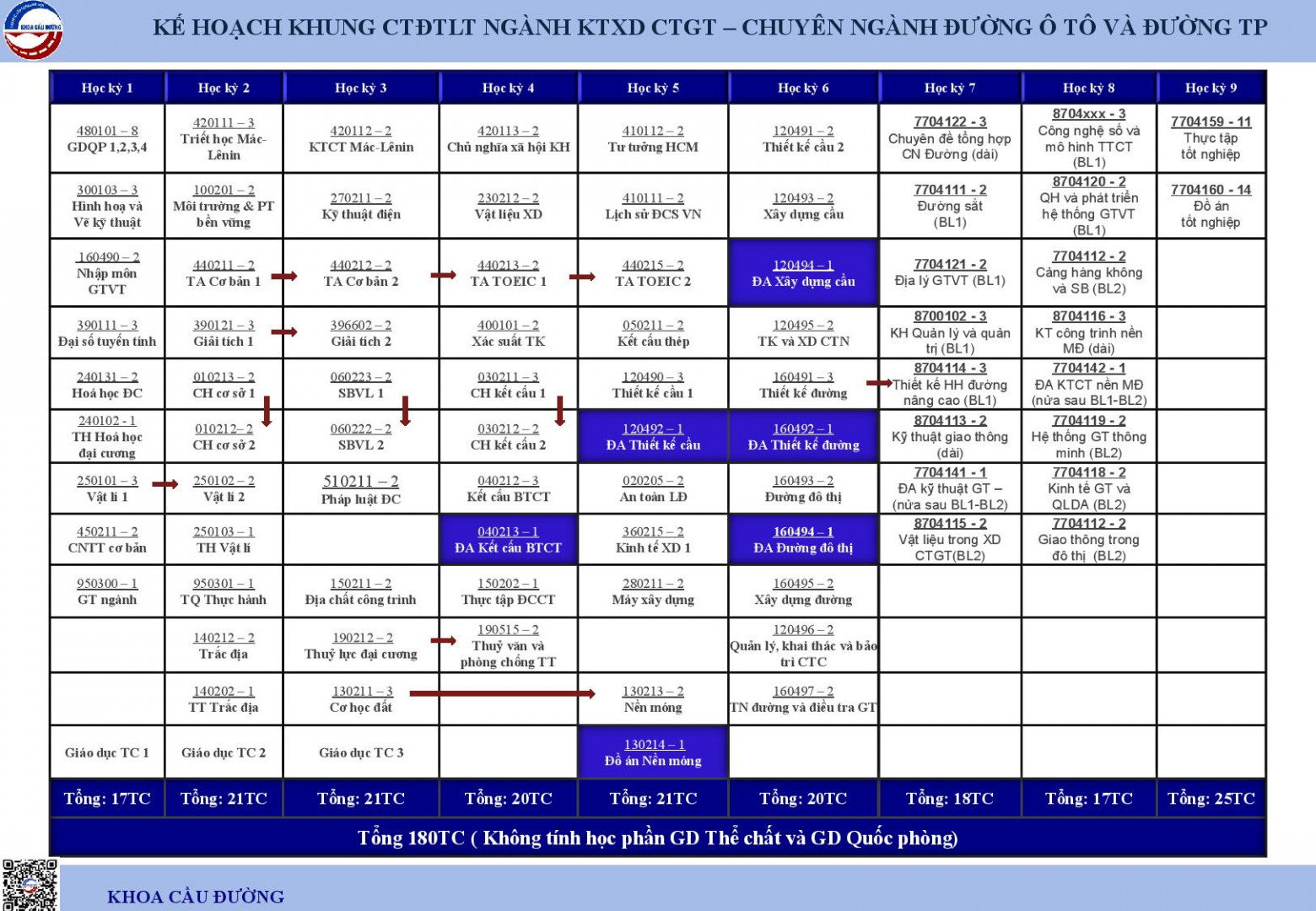 - Bảng chi tiết và kế hoạch khung sinh viên xem dưới đây.