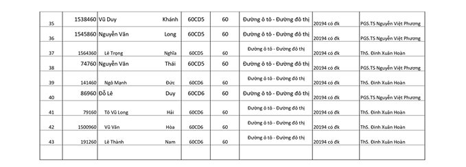 Lưu ý: Sinh viên ngành Cầu, Trắc địa liên hệ với bộ môn hoặc lên trang web của bộ môn để được biết giáo viên hướng dẫn.