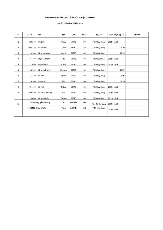- Giao đồ án tốt nghiệp đợt 4 năm học 2019-2020