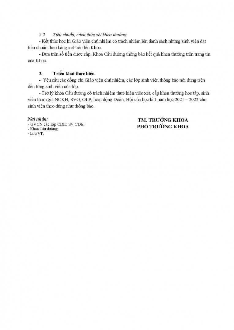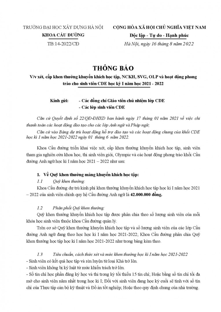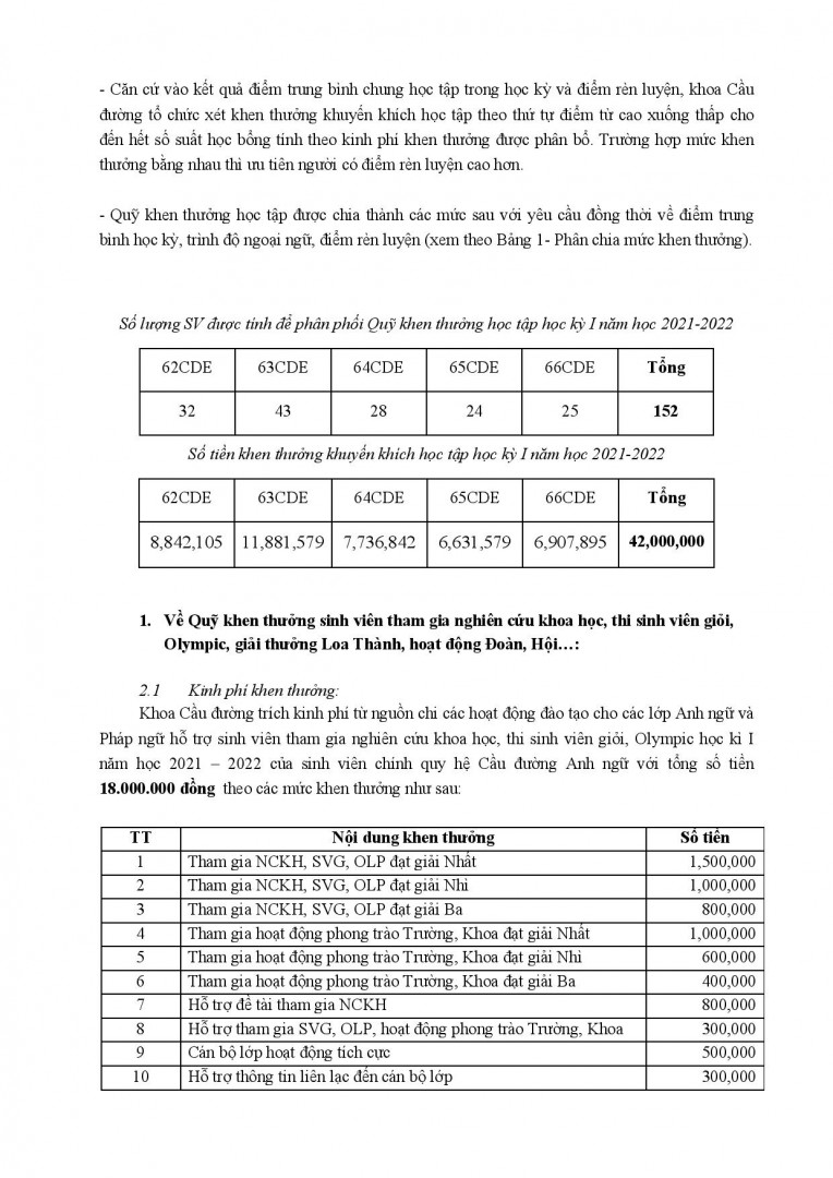 - Thông báo khen thưởng hệ Cầu đường Anh ngữ học kì 1 NH 2021/2022