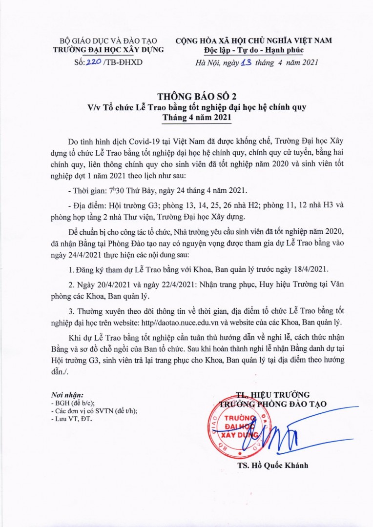 - THÔNG BÁO DÀNH CHO SINH VIÊN TỐT NGHIỆP NĂM 2020 ĐÃ NHẬN BẰNG