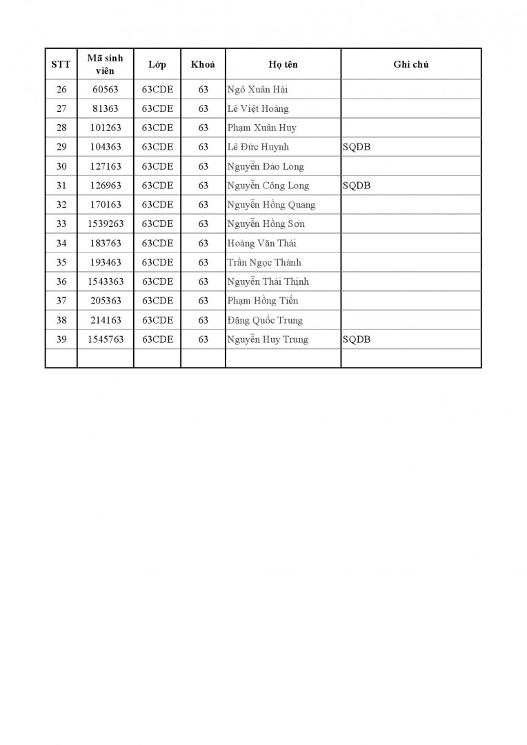 - Toàn bộ sinh viên có tên trong danh sách sau đúng 07H00 có mặt tại tầng 2 Hội trường G3 – hàng V + 1/2W.