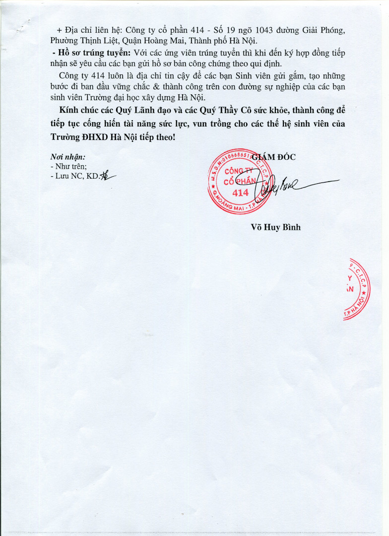 - [Tuyển dụng] Công ty Cổ phần 414 – Tập đoàn CIENCO4