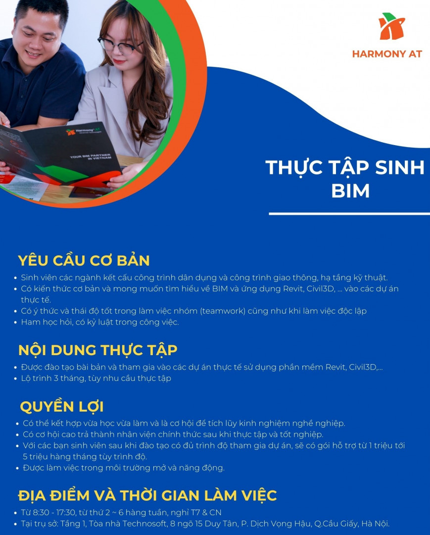 [TUYỂN DỤNG] Công ty TNHH Công nghệ cao Hài Hoà (Harmony AT) tuyển dụng thực tập sinh về BIM.